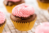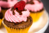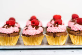 Lukier czekoladowy babeczki z kremem malinowym ser maślany.