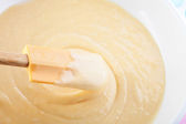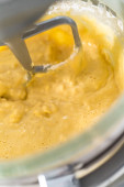 Ciasto cytrynowe funta w szklanej misce do mieszania.