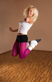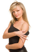 obraz piękny blond kobieta w sukni na białym tle