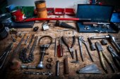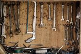 w sklepie kamieniarskim wieszam różne narzędzia na ścianie