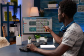 Zdjęcie "Afrykańska freelance kobieta cieszy się pracy w domu" może być wykorzystywane do celów osobistych i komercyjnych zgodnie z warunkami zakupionej licencji Royalty-free. Obraz jest dostępny do pobrania w jakości wysokiej rozdzielczości do 5760x3840.
