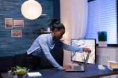 Afrykańska freelance kobieta cieszy się pracy w domu