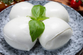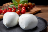 Zdjęcie "Kolekcja serów, białe kulki miękkiego włoskiego sera mozzarella, podawane z czerwonymi pomidorami wiśniowymi, świeże liście bazylii z bliska" może być wykorzystywane do celów osobistych i komercyjnych zgodnie z warunkami zakupionej licencji Royalty-free. Obraz jest dostępny do pobrania w jakości wysokiej rozdzielczości do 5760x3840.