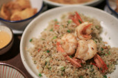 Zdjęcie "Spicy Thai sałatka owocowa z krewetkami na drewnianym stole w kawiarni, Thai pikantny styl zdrowej żywności tajskiej kuchni." może być wykorzystywane do celów osobistych i komercyjnych zgodnie z warunkami zakupionej licencji Royalty-free. Obraz jest dostępny do pobrania w jakości wysokiej rozdzielczości do 5760x3840.
