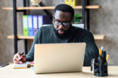 Zdjęcie "Afroamerykanin piszący na laptopie" może być wykorzystywane do celów osobistych i komercyjnych zgodnie z warunkami zakupionej licencji Royalty-free. Obraz jest dostępny do pobrania w jakości wysokiej rozdzielczości do 5760x3840.