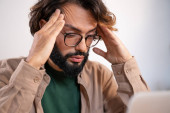 Zdjęcie "Młody przystojniak z komputerem na laptopie martwi się o niebieskie tło. Kopiuj miejsce na tekst." może być wykorzystywane do celów osobistych i komercyjnych zgodnie z warunkami zakupionej licencji Royalty-free. Obraz jest dostępny do pobrania w jakości wysokiej rozdzielczości do 5760x3840.