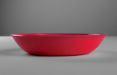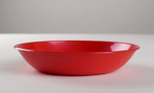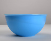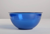 Niebieski przezroczysty plastikowe głębokie naczynie, izolowane na białym tle