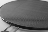 Zamknij uo sito metaliczne z uchwytem z tworzywa sztucznego, nowoczesne naczynia kuchenne