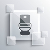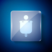 Biała ikona muszli klozetowej na niebieskim tle. Szklane panele. Wektor.