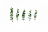 Zielone liście eukaliptusa izolowane na białym tle.