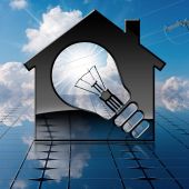 Zdjęcie "Zbliżenie dłoni z rękawicą ochronną pokazującą mały model domu z panelami słonecznymi na dachu i na tle. Koncepcja energii odnawialnej. Fotografia i ilustracja 3D." może być wykorzystywane do celów osobistych i komercyjnych zgodnie z warunkami zakupionej licencji Royalty-free. Obraz jest dostępny do pobrania w jakości wysokiej rozdzielczości do 5760x3840.
