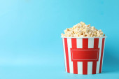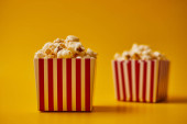duże, średnie i małe wiadra popcornu na żółto, koncepcja kina
