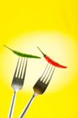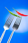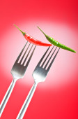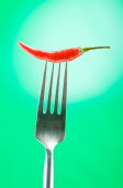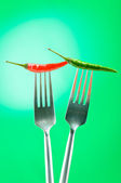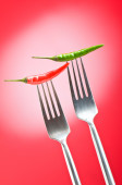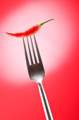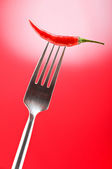 ostra papryka na widelec z kolorem tła