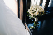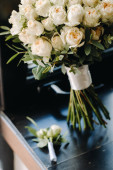 Bukiet weselny z piwoniami na ślubie.Piękny bukiet kwiatów.