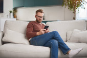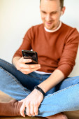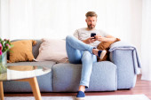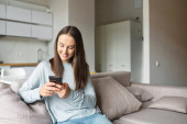 Zdjęcie "Wolny strzelec używa smartfona w domu." może być wykorzystywane do celów osobistych i komercyjnych zgodnie z warunkami zakupionej licencji Royalty-free. Obraz jest dostępny do pobrania w jakości wysokiej rozdzielczości do 5760x3840.