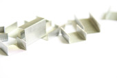 Ostrza do noży do papieru, zbliżenie. Segmentowane ostrza noża na białym tle. Artykuły piśmienne.
