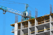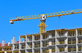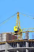Dźwig i budynek w budowie przed błękitnym niebem