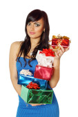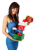 brunetka dziewczyna w stroju santa gospodarstwa obecny