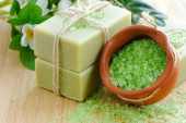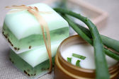 Aloe vera liści, ręcznie robione mydło i kąpieli soli