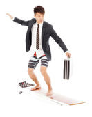 Zdjęcie "zabawne biznesmen działa poza i przewozu bagażu" może być wykorzystywane do celów osobistych i komercyjnych zgodnie z warunkami zakupionej licencji Royalty-free. Obraz jest dostępny do pobrania w jakości wysokiej rozdzielczości do 5760x3840.