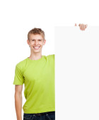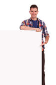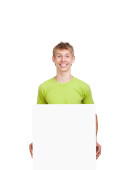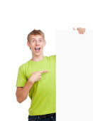 młody człowiek, wskazując na białym tle