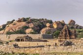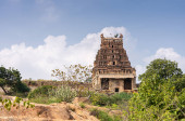 Zdjęcie "Badami, Karnataka, Indie - 7 listopada 2013: Świątynie jaskini nad jeziorem Agasthya. Brązowy kamień Górna Shivalaya Świątynia i ściana na czerwonawym skalistym wzgórzu naprzeciwko jeziora pod błękitnym niebem." może być wykorzystywane do celów osobistych i komercyjnych zgodnie z warunkami zakupionej licencji Royalty-free. Obraz jest dostępny do pobrania w jakości wysokiej rozdzielczości do 5760x3840.