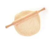 Rolling pin z ciasta izolowane na białym tle. widok z góry