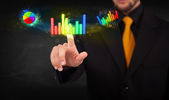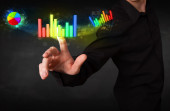 mężczyzna przystojny młody biznes dotykając kolorowy wykres nowoczesne syste