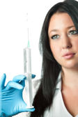 Medycyna - pielęgniarka kobieta patrząc w mikroskopie
