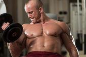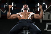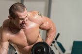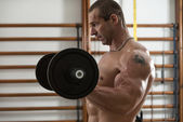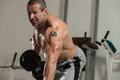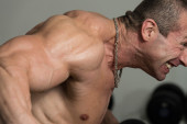 Zdrowy człowiek robi ciężar ćwiczeń na plecy