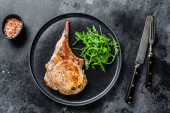 Zdjęcie "Pieczona jagnięcina. Mroczne tło. Widok góry. Przestrzeń kopiowania" może być wykorzystywane do celów osobistych i komercyjnych zgodnie z warunkami zakupionej licencji Royalty-free. Obraz jest dostępny do pobrania w jakości wysokiej rozdzielczości do 5760x3840.