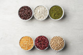 asortyment fasoli na powierzchni drewnianej