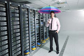młody przystojny biznes człowiek to inżynier w datacenter serwerowni