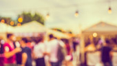 abstrakcyjny obraz rozmycia stoiska spożywczego na dzień festiwalu do wykorzystania w tle. (vintage dźwięk)