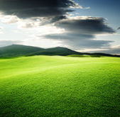 zielone pole i błękitne niebo
