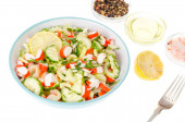 Wegetariańska przystawka ogórka, selera i surimi. Studio zdjęcie