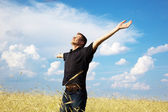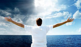 zachód słońca i szczęśliwy człowiek