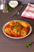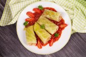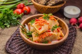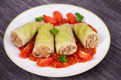 Kapusta z mięsem, ryżem i warzywami. Chou farci, dolma, sarma, golubtsi lub golabki