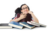 zmęczony studenta z podręczników