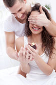uśmiechnięty mężczyzna młody dziewczyna daje prezent