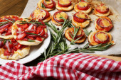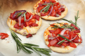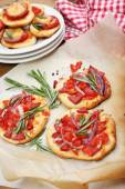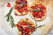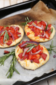małe pizze na papieru do pieczenia z bliska