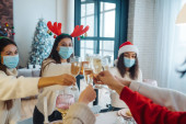 Wieloetniczni młodzi ludzie świętują Sylwestra na imprezie