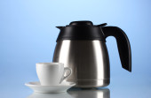 błyszczący czajnik przeciwko kolorowe tło gradientowe