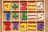 dzieci liter i cyfr na stole