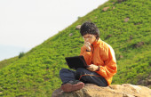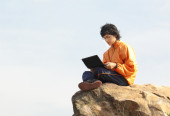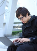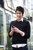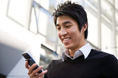 dorywczo azjatycki biznesmen SMS na swój telefon komórkowy