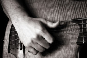 Gra repinique (rep repique dwoma grotami brazylijski drum); stonowanych monochr
