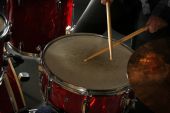 gra repinique (rep, repique, dwugłowy brazylijski drum), stonowanych monochr
