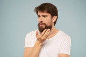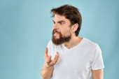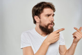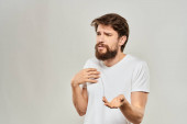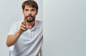 mężczyzna w białej koszuli emocje biały makieta prezentacja reklama