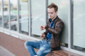 Zdjęcie "młody człowiek, patrząc na zegarek" może być wykorzystywane do celów osobistych i komercyjnych zgodnie z warunkami zakupionej licencji Royalty-free. Obraz jest dostępny do pobrania w jakości wysokiej rozdzielczości do 5760x3840.