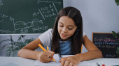 podekscytowany dzieciak w słuchawkach patrząc na laptopa podczas nauki online w domu